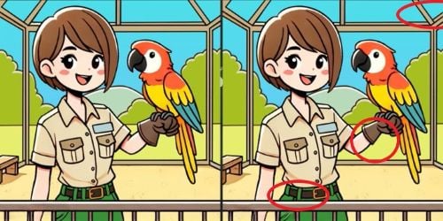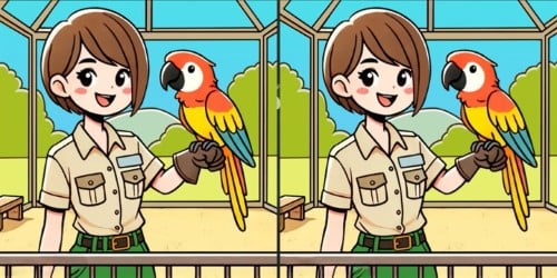 Na obrázcích je dívka a papoušek. Na první pohled se zdá, že jsou obrázky totožné, ale skrývají se v nich tři rozdíly. Vaším úkolem je najít je za pouhých 17 sekund.