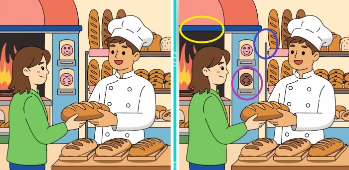 Jste připraveni otestovat se? Před sebou máte dva obrázky pekaře a chleba. Na první pohled vypadají úplně stejně, ale autor v nich ukryl tři malé rozdíly. Dokážete je najít za pouhých 25 sekund? Dejte si na čas a otestujte svou pozornost.