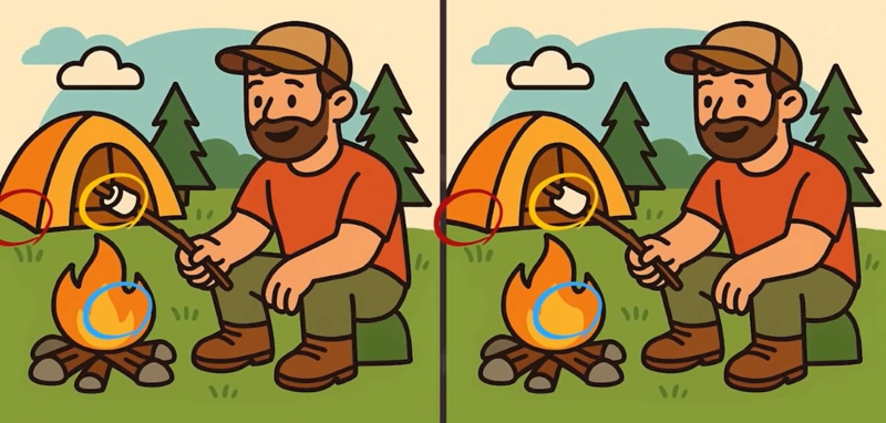 Tentokrát se budete muset podívat na snímky muže opékajícího marshmallow u ohně. Na první pohled vypadají úplně stejně, ale autor v nich ukryl tři malé rozdíly. Na jejich nalezení máte pouze 51 sekund!